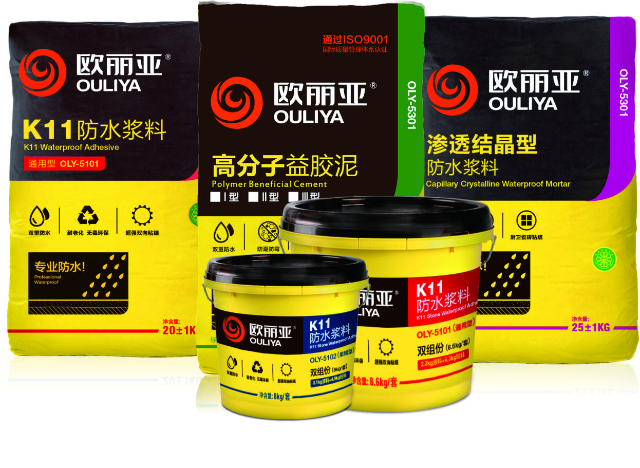 歐麗亞聚合物水泥防水涂料。又稱JS復合防水涂料(“JS”為“聚合物水泥”的拼音字頭),是一種以聚苯烯酸酯乳液、乙烯-除酸乙烯酯共聚乳液等聚合物乳液與各種添加劑組成的有機液料,和水泥、石英砂、輕重質(zhì)碳酸鈣等無機填料及各種添加劑所組成的無機粉料通過合理配比、復合制成的一種雙組份水性建筑防水涂料。