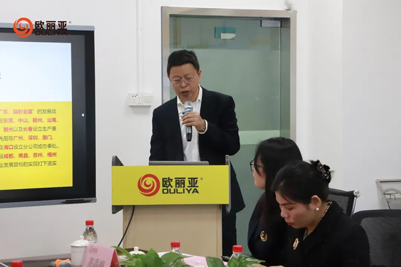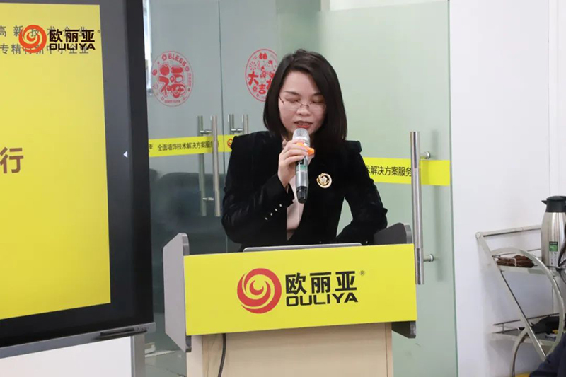會(huì)議伊始,歐麗亞總經(jīng)理李清致歡迎詞,對(duì)深圳防水協(xié)會(huì)一行的蒞臨表示熱烈歡迎。李總指出歐麗亞成立十八年來(lái),始終堅(jiān)守綠色創(chuàng)新、以質(zhì)取勝的信念,致力于研發(fā)和生產(chǎn)高品質(zhì)的建筑材料,也希望此次協(xié)會(huì)一行的走訪,能為歐麗亞在未來(lái)企業(yè)管理、市場(chǎng)拓展、產(chǎn)品研發(fā)和技術(shù)應(yīng)用帶來(lái)最前沿的行業(yè)態(tài)勢(shì)及專業(yè)的技術(shù)見解。